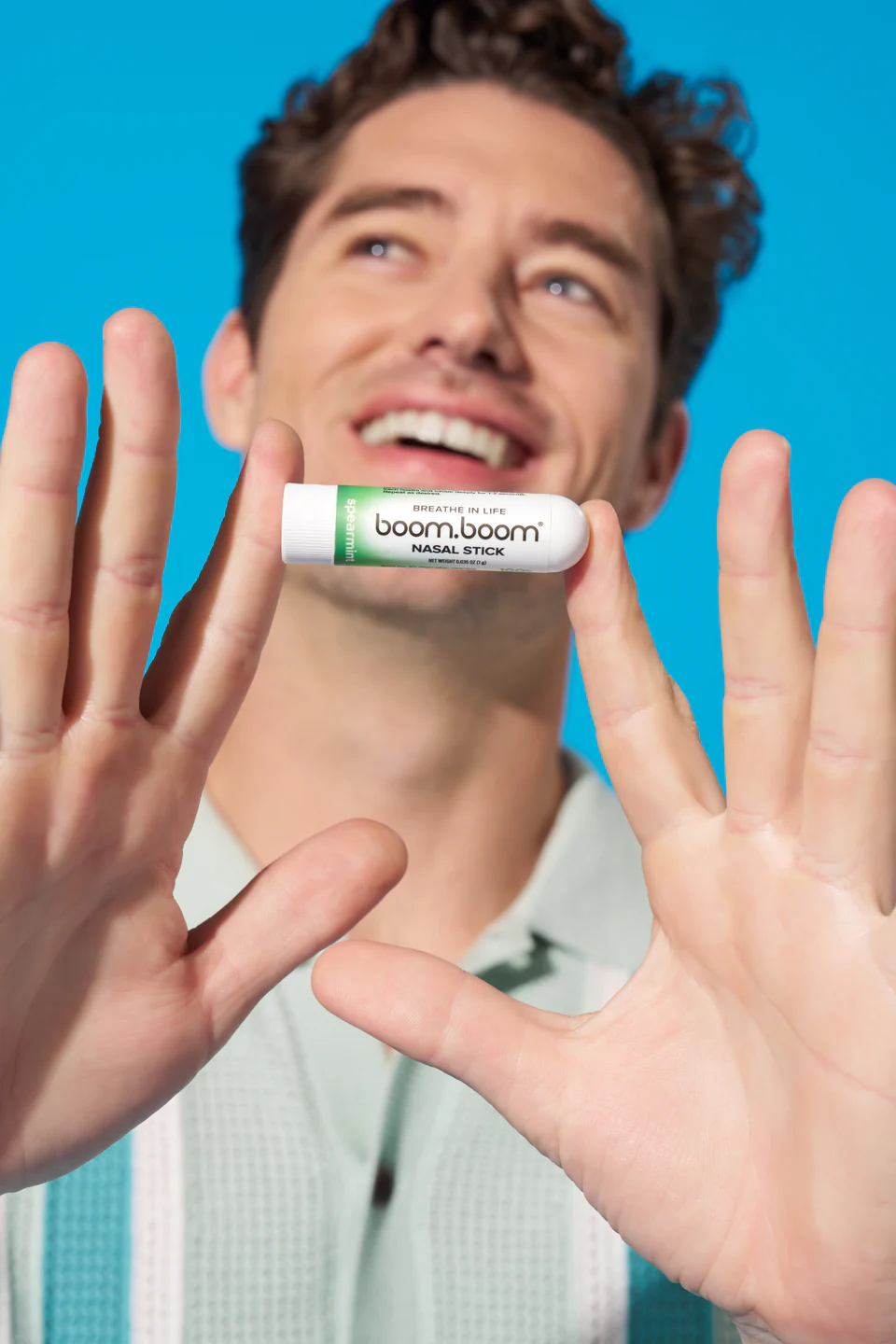 Meet John Pinto, our founder & CEO. Growing up, John was a mouth-breather, literally. After nasal surgery for a deviated septum, he tried a menthol-based nasal inhaler - and it sparked something. Intrigued by how effective it was, he teamed up with U.S. scientists to create BoomBoom: a cleaner, more refreshing way to breathe in life. What began as a personal passion turned into a Shark Tank success story - and is now available in thousands of stores across the U.S.!